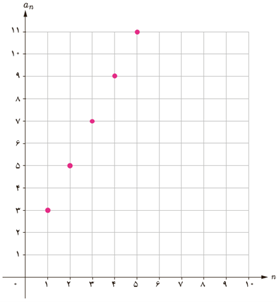 دنبالهٔ حسابی \({a_n} = 3 + 2\left( {n - 1} \right)\) را در نظر بگیرید.