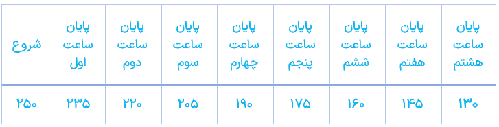 طبق جدول و الگو، پس از 8 ساعت، سطح دارو به 130 میلی گرم می رسد.