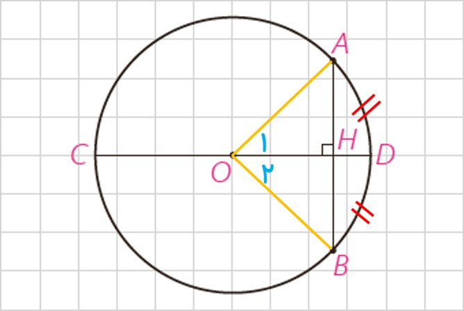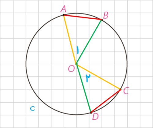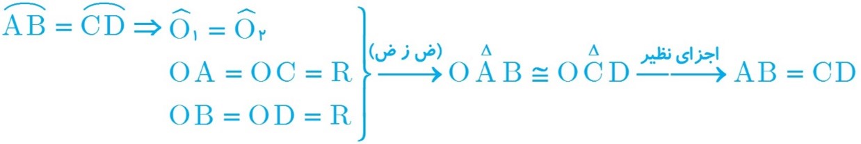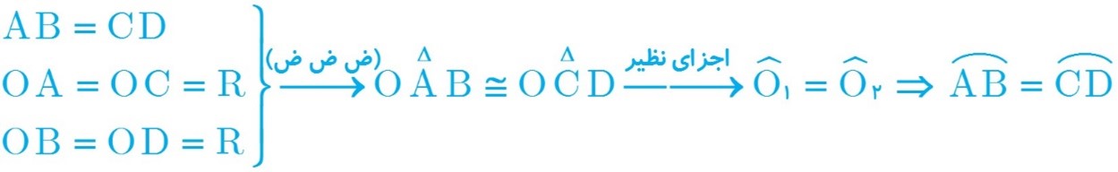 فرض: \(AB = CD\) حکم: \(\mathop {AB}\limits^\frown \, = \mathop {CD}\limits^\frown \,\)