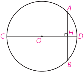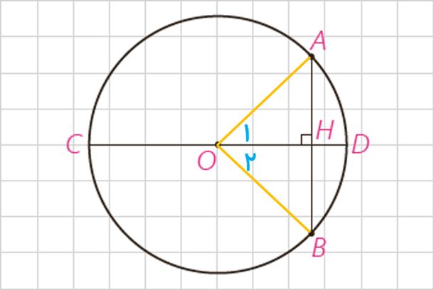 3 وتر AB و قطری از دایره، که بر وتر AB عمود است، مانند شکل مقابل داده شده است. با تشکیل مثلث های AOH و BOH ثابت کنید قطر CD وتر AB و کمان AB را نصف می کند.