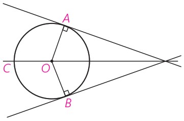 فرض کنید دایرهٔ C بر دو ضلع زاویه ای مانند شکل مماس باشد.