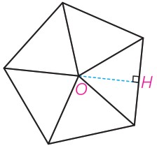 ب فرض کنید یک چند ضلعی مانند شکل مقابل به گونه ای باشد که نیمسازهای زوایای داخلی آن در نقطهٔ O یکدیگر را قطع کرده باشند و OH پاره خط عمود به یک ضلع چند ضلعی باشد. دایره ای به مرکز O و شعاع OH برای چند ضلعی مفروض چه نوع دایره ای است؟ چرا؟