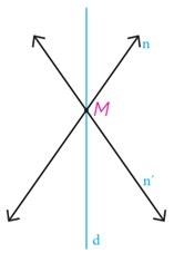 الف اگر خط n موازی خط بازتاب d باشد، تصویر آن را تحت بازتاب، خط 'n می نامیم. خطوط n و 'n نسبت به هم چه وضعی دارند؟ چرا؟