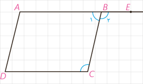 قضیۀ 2: در متوازی الاضلاع هر دو زاویهٔ مجاور مکمل اند.