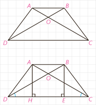 ب اما اثبات عکس آن نیاز به تفکر بیشتر دارد. فرض کنیم DB = AC. آیا می توانید در شکل مقابل دو مثلث هم نهشت پیدا کنید که از آن AD = BC یا مساوی بودن اندازه های دو زاویهٔ مجاور به قاعده نتیجه شود؟