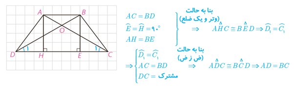 الف AD = BC از هم نهشتی کدام دو مثلث نتیجه می گیرید AC = BD است؟