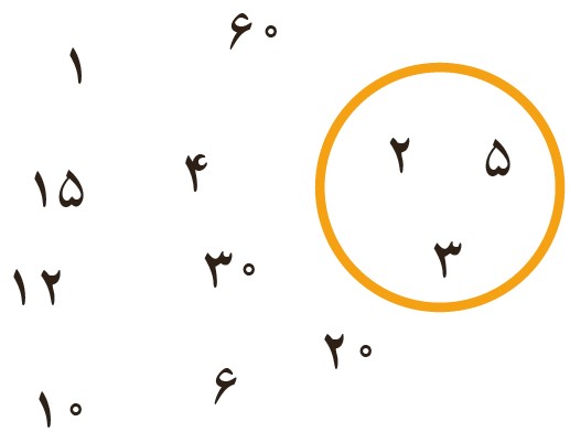 الف در شکل روبه رو شمارنده های طبیعی عدد ٦٠ را نوشته ایم و بین آنها شمارنده های اوّل را مشخص کرده ایم. شما هم شمارنده های ٦٠ را که اوّل نیستند، در یک منحنی بسته قرار دهید.