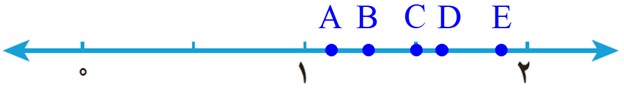 1 پنج عدد بین 1 و 2 معرفی کنید و آنها را روی محور نمایش دهید.