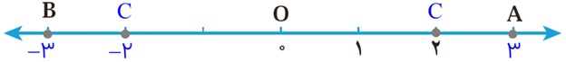 2 نقطه C را روی محور نمایش دهید به طوری که طول OC برابر ٢ باشد؛ چند نقطه می توان یافت؟