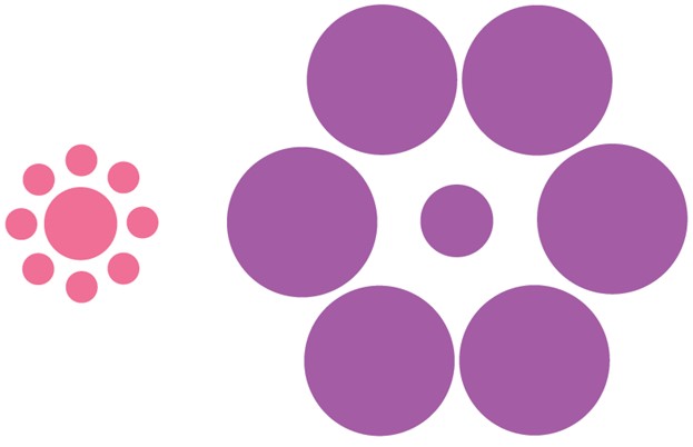 با توجه به اینکه دایره های کناری در سمت چپ کوچک تر از دایره های کناری در سمت راست است در نگاه اول دایره ی سمت چپ بزرگ به نظر می آید در صورتی که در دو دایره با هم برابر می باشد (منظور دایره ی مرکزی است)