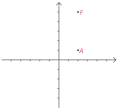 1 مقدار a برابر هست با فاصله نقطۀ کانون (F) از نقطۀ رأس (A)؛ بنابراین کافی است که اندازه پاره خط FA را محاسبه نماییم: