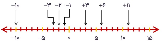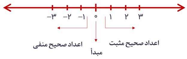 عدد صفر را به عنوان مبدأ در نظر می گیریم. سمت راست صفر را با اعداد صحیح مثبت و سمت چپ صفر را با اعداد صحیح منفی نمایش می دهیم.