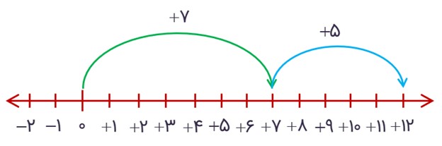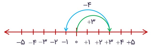محور اعداد به ما کمک میکند تا حرکت ناشی از جمع و تفریق را ببینیم. برای عددهای مثبت به راست و برای عددهای منفی به چپ حرکت میکنیم.
