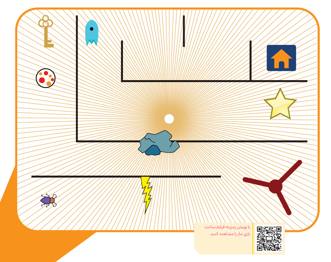 فیلم ساخت بازی ماز را مشاهده کنید، سپس این بازی را با هر مسیر پر پیچ و خم و موانع دیگری طراحی کنید، پس از آن کدهای لازم را در ناحیه ی برنامه نویسی قرار دهید.