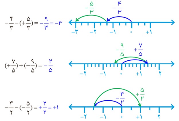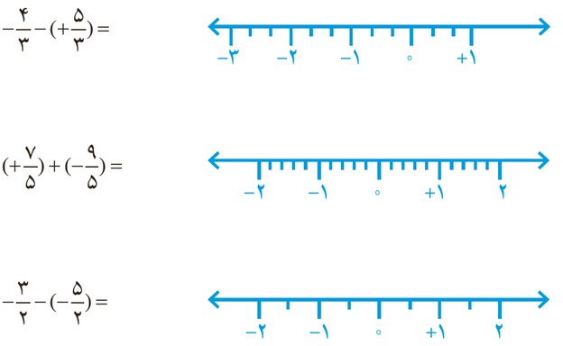 به کمک محور، حاصل عبارت های زیر را به دست آورید. ابتدا تفریق ها را به صورت جمع بنویسید.