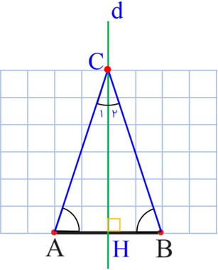د آیا خط تقارن ،عمودمنصّف قاعده و نیمساز زاویهٔ مقابل آن است؟