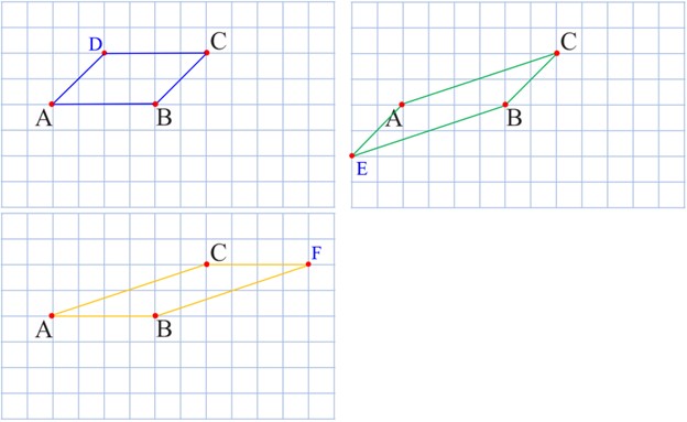 2 متوازی الاضلاعی رسم کنید که نقاط A، B و C سه تا از رأس های آن باشند.