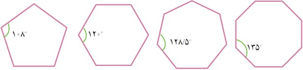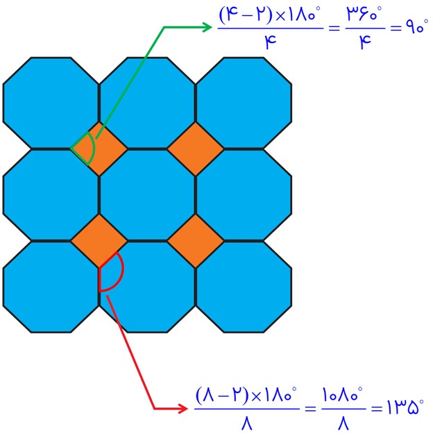 3 سطح رو به رو با دو نوع کاشی منتظم، کاشی کاری شده است. اندازهٔ زاویه های هر دو نوع کاشی را محاسبه کنید.