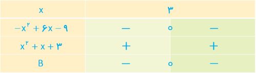 ب \(B = \frac{{ - {x^2} + 6x - 9}}{{{x^2} + x + 3}}\)