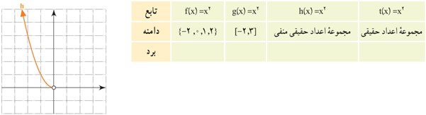 2 نمودارهای توابع داده شده را رسم و با یکدیگر مقایسه کنید. نمودار تابع h رسم شده است. جدول را کامل کنید.