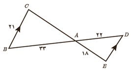 3 اگر سه مثلث ABC و \(A'B'C'\) و \(A''B''C''\) به گونه ای باشند که \(A\mathop B\limits^\Delta C \sim A'\mathop B\limits^\Delta 'C'\) و \(A'\mathop B\limits^\Delta 'C'\sim A''\mathop B\limits^\Delta ''C''\) دربارۀ دو مثلث ABC و \(A''B''C''\) چه می توان گفت؟ چرا؟