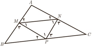 \(\left\{ \begin{array}{l}MN\parallel BC\,\not |\,NP \Rightarrow {{\hat N}_1} = {{\hat P}_3}\\\\MN\parallel BC\\\\MN\parallel NP\end{array} \right.\)