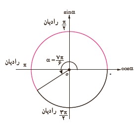 سایر نسبت های مثلثاتی زاویهٔ \(\frac{{7\pi }}{6}\) رادیان را مطابق نمونه مشخص کنید.