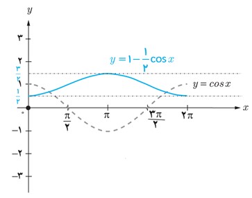 3 \(y = 1 - \frac{1}{2}\cos x\)