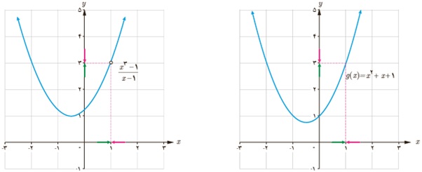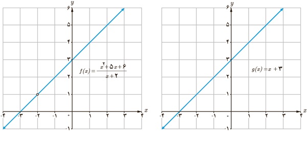 دو تابع مربوط به نمودارها با هم برابر نیستند ولی دارای حد 3 هستند.