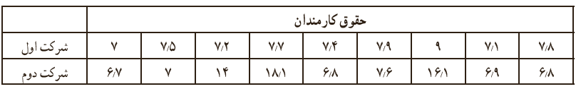 * حقوق تقریباً %50 کارمندان شرکت دوم کمتر از کمترین حقوق کارمندان شرکت اول است.