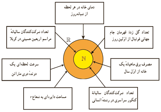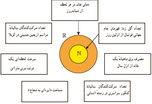 2 داخل هر کدام از مستطیل های زیر مسئله ای را بنویسید که دامنهٔ مدل ریاضی آن مطابق شکل زیر باشد: