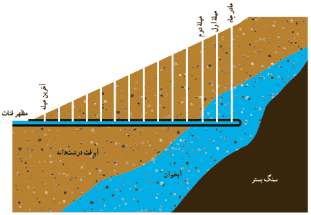 قنات یا کاریز، راِه آب یا کانالی است که در زیرزمین کنده شده است تا آبی را که از حفر چاه اصلی )نخستین چاه( به نام «مادرچاه» به دست آمده است، به منطقه ای دیگر انتقال دهد. برای حفر کانال، مطابق شکل زیر، از چاه های کمکی به نام «میله» استفاده می کنند. میله ها برای رساندن اکسیژن و نیز کمک به مقنّی 1 در خارج کردن خاک های حاصل از حفر کانال و بعدها برای کمک به لایروبی و تعمیر قنات حفر می شوند. در یک منطقه، مقنّی پس از حفر چاه در عمق 30 متری سطح زمین، به آب زیرزمینی دست یافته و در این عمق شروع به حفر کانال قنات کرده است. با توجه به شیب ثابت زمین و حفر چاه های کمکی در فاصله های یکسان از هم، عمق میلهٔ اول 29/5 متر و میلهٔ دوم 29 متر بوده و به همین ترتیب، عمق میله ها کاهش یافته است. اگر عمق آخرین میله 1/5 متر باشد، این مقنی در مجموع چند چاه حفر کرده است؟