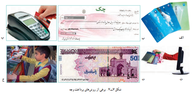 شما تاکنون کدام یک از گزینه های شکل 7-7 را برای خرید کالاها و خدمات مورد نیاز خود به کار برده اید؟ درباره چگونگی کاربرد هر یک از گزینه های زیر در گروه خود گفت و گو کنید.