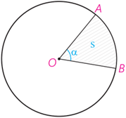 3 ناحیه ای از درون و روی دایره را، که به دو شعاع دایره و آن دایره محدود است یک قطاع دایره می نامند. اگر زاویهٔ مرکزی قطاعی از دایرهٔ C(O,R) بر حسب درجه مساوی α باشد، نشان دهید طول کمان AB برابر است با : \(L = \frac{{\pi R}}{{180}}\alpha \) و مساحت قطاع برابر است با: \(S = \frac{{\pi {R^2}\alpha }}{{360}}\)