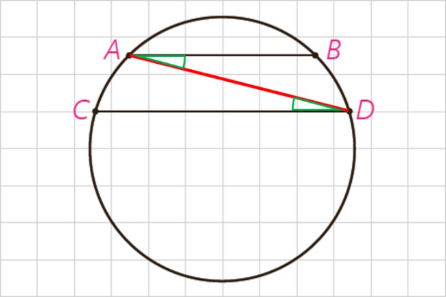 1 در شکل مقابل وترهای AB و CD موازی هستند.