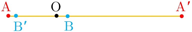 \(\begin{array}{l}A'B' = OA' + OB'\;\;\;\mathop \Rightarrow \limits_{OB' = k.OB}^{OA' = k.OA} \;\;\\\\A'B' = k.OA + k.OB = k\left( {OA + OB} \right) = k.AB\\\\ \Rightarrow A'B' = k.AB \Rightarrow \frac{{A'B'}}{{AB}} = k\end{array}\)