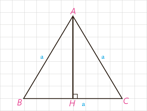 فرض کنیم اندازهٔ هر ضلع مثلث متساوی الاضلاع ABC برابر a باشد، ارتفاع AH را رسم می کنیم. ارتفاع AH میانه نیز است؛ چرا؟