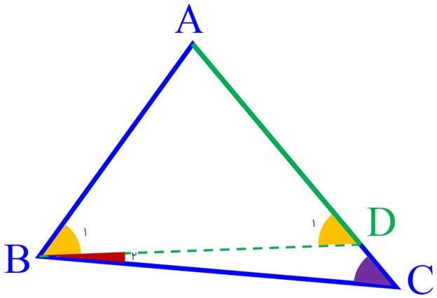 \(\begin{array}{l}\left. \begin{array}{l}{{\hat B}_1} = {{\hat D}_1}\\\\{{\hat D}_1} = {{\hat B}_2} + \hat C\end{array} \right\} \Rightarrow {{\hat B}_1} = {{\hat B}_2} + \hat C\\\\\left. \begin{array}{l} \Rightarrow {{\hat B}_1} > \hat C\\\\\hat B = {{\hat B}_1} + {{\hat B}_2}\end{array} \right\} \Rightarrow \hat B > \hat C\end{array}\)