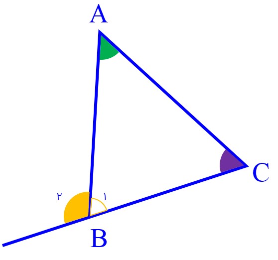 همچنین می دانیم که بر روی امتداد پاره خط BC در رأس B، چنین داریم: