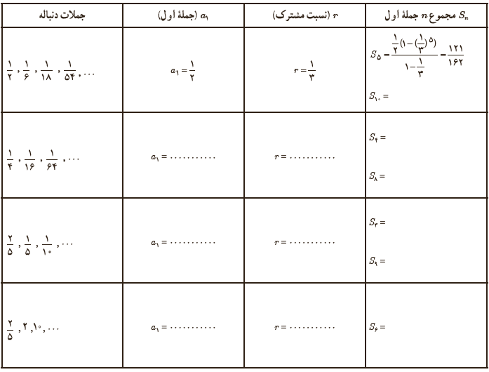 1 جدول زیر را کامل کنید. (در صورت نیاز از ماشین حساب استفاده شود.)