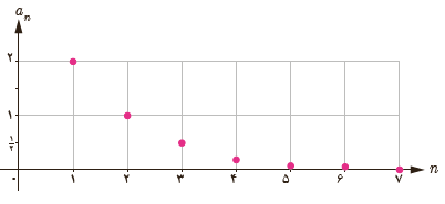 2 .نمودار زیر یک دنبالهٔ هندسی را مشخص می کند. با نوشتن سه جملهٔ اول آن و محاسبهٔ نسبت مشترک دنبالهٔ هندسی: