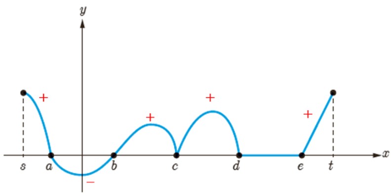 تابع f در بازههای [s,a]، [b,d] و [e,t] صعودی است.