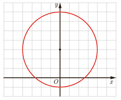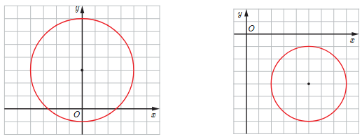 \(\left\{ \begin{array}{l}r = 4\\O(0\;,\;3)\end{array} \right. \Rightarrow {x^2} + {(y - 3)^2} = 16\)