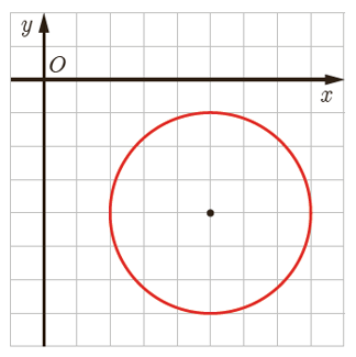 \(\left\{ \begin{array}{l}r = 3\\O(5\;,\; - 4)\end{array} \right. \Rightarrow {(x - 5)^2} + {(y + 4)^2} = 9\)