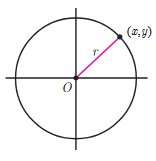 ب دایره ای به مرکز مبدأ مختصات و شعاع r.