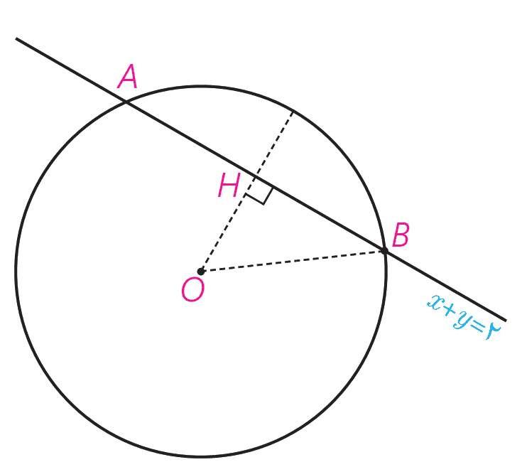 معادله دایره ای را بنویسید که O(0,1) مرکز آن بوده و روی خط به معادله x+y=2 وتری به طول \(2\sqrt 2\) جدا کند.