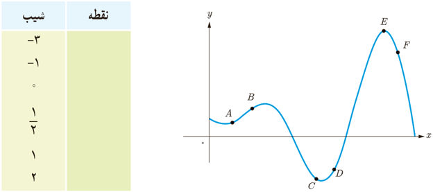 2 نقاط داده شده روی منحنی زیر را با شیب های ارائه شده در جدول نظیر کنید.