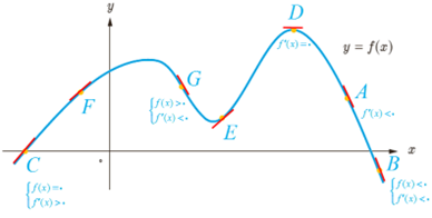 ب B نقطه ای روی نمودار تابع است که مقدار تابع و مقدار مشتق در آن منفی است.