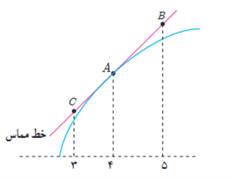 8 برای تابع f در شکل زیر داریم: f’(4)=1/5 و f(4)=25 با توجه به شکل مختصات نقاط B، A و C را بیابید.