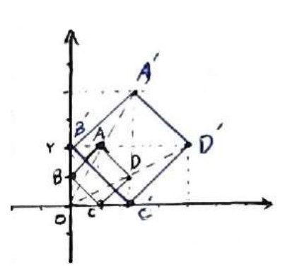 \(\begin{array}{l}A\left( {1,2} \right) \Rightarrow A'\left( {2,4} \right)\\\\B\left( {0,1} \right) \Rightarrow B'\left( {0,2} \right)\\\\C\left( {1,0} \right) \Rightarrow C'\left( {2,0} \right)\\\\D\left( {2,1} \right) \Rightarrow D'\left( {4,2} \right)\end{array}\)
